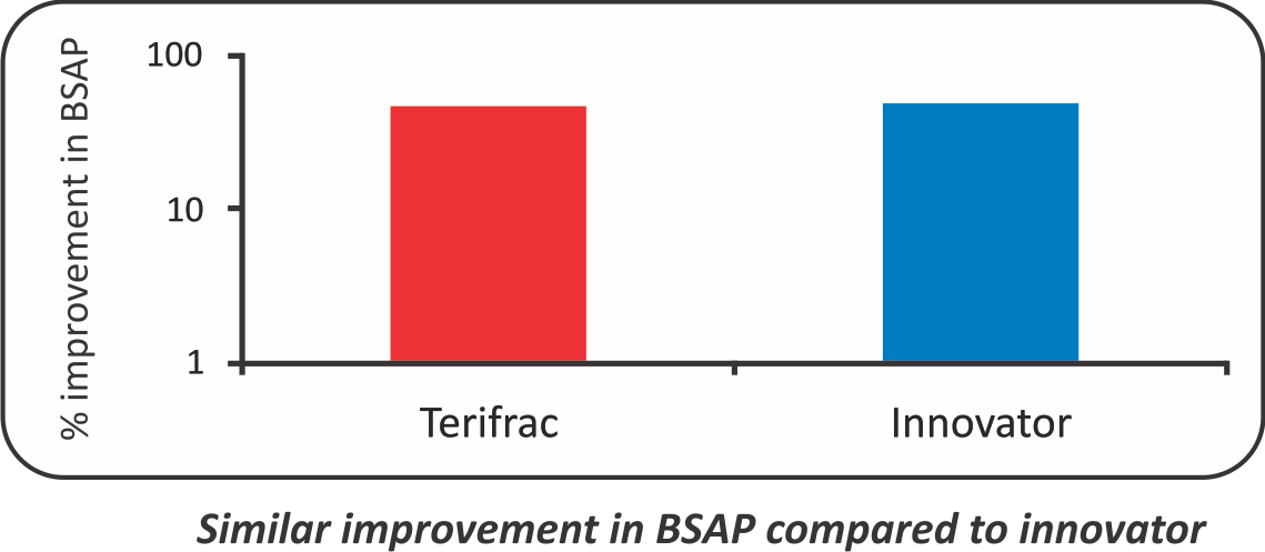 - The mean BSAP increased from 20.45 to 27.92 Intas Teriparatide group and from 18.63 to 26.75 in Forteo group i.e. 47.18% and 48.55% change respectively. (p value<0.05)