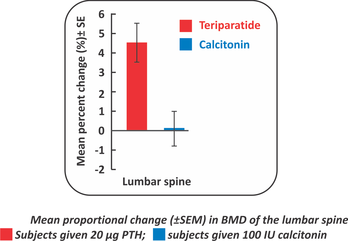 - A linear increase in lumbar spine BMD was observed in the treatment group with Teriparatide in male Osteoporosis